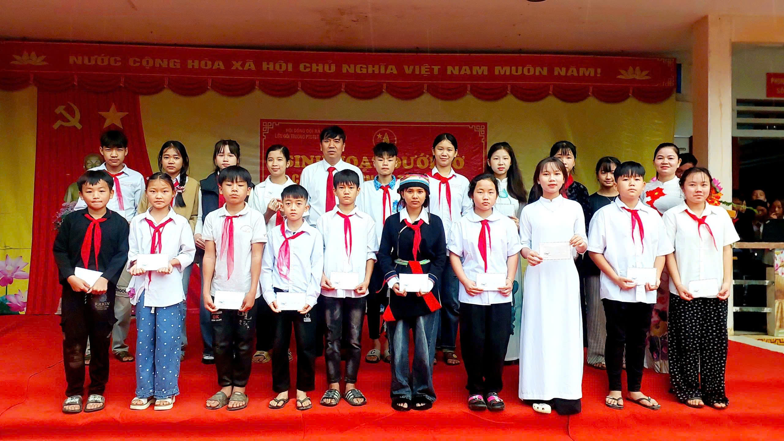 Trong buổi sinh hoạt nhà trường đã sơ kết phong trào thi đua chào mừng ngày Nhà giáo Việt Nam và trao các giải thưởng cho tập thể lớp và cá nhân gồm: Trao 01 giải nhất, 02 giải nhì, 03 giải ba và 10 giải khuyến khích cho các đội đạt giải trong Hội thi trang phục tái chế; trao 01 giải nhất, 01 giải nhì, 01 giải ba cho các tập thể lớp và 32 cá nhân học sinh tiêu biểu trong phong trào thi đua chào mừng ngày Nhà giáo Việt Nam; khen thưởng cho 05 học sinh tiêu biểu trọng hoạt động bán trú; trao 02 giải nhì, 04 giải ba và 22 giải khuyến khích cho học sinh đạt giải trong kỳ thi chọn học sinh giỏi cấp trường năm học 2025 - 2026.