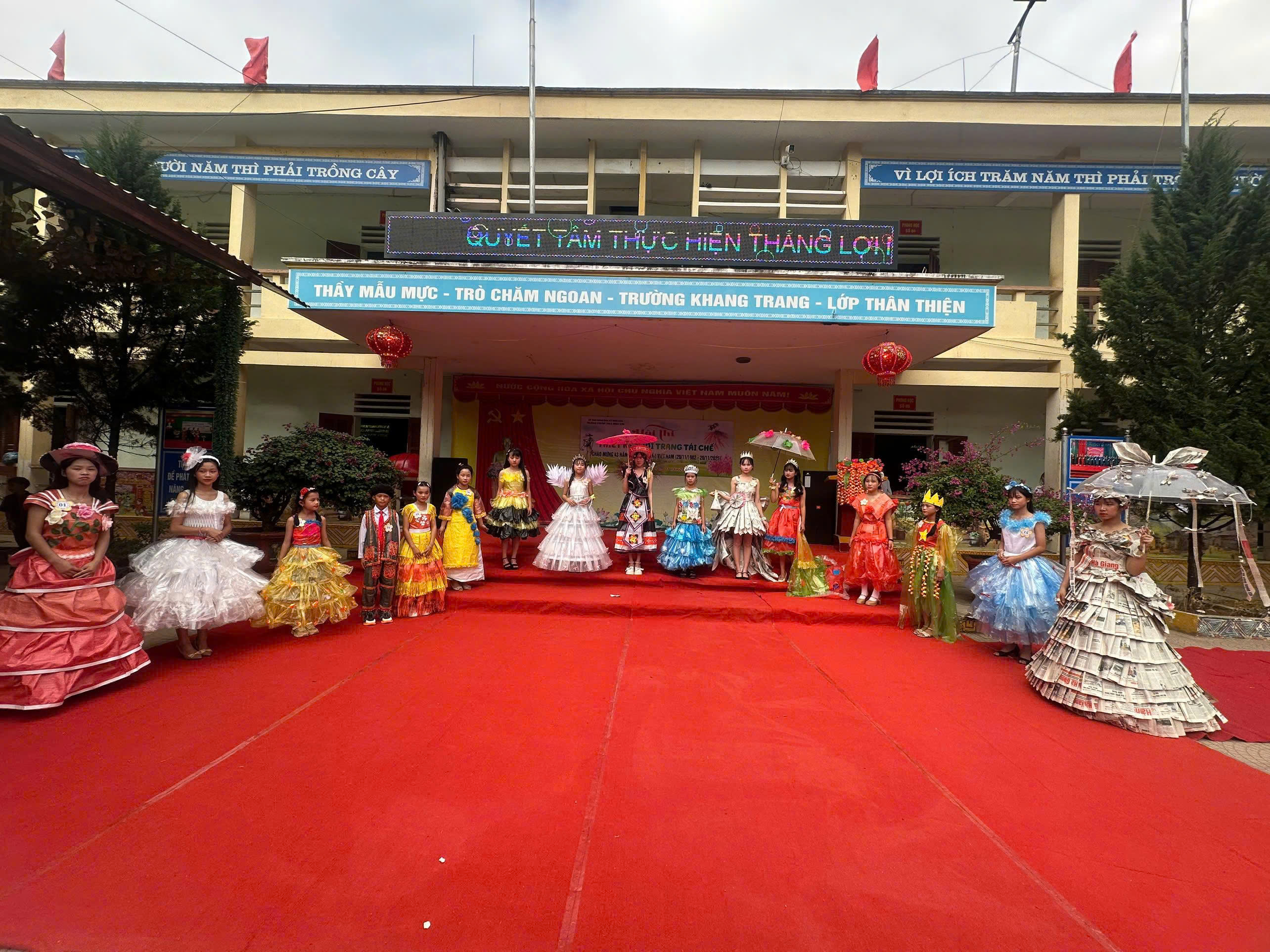 nhưng qua đôi tay khéo léo và trí tưởng tượng phong phú của các em, chúng đã trở thành những bộ trang phục độc đáo, sinh động và đầy ý nghĩa giáo dục.