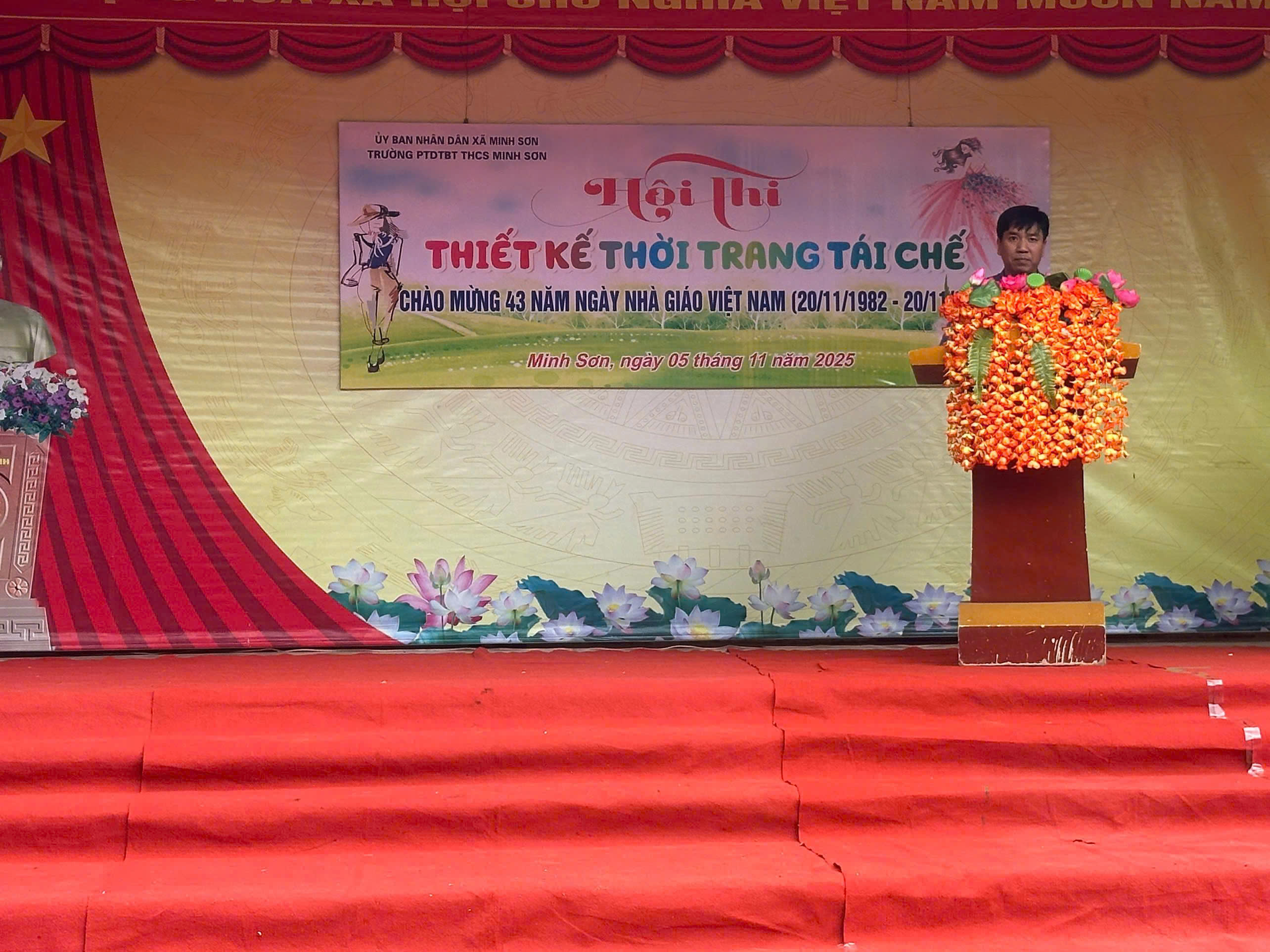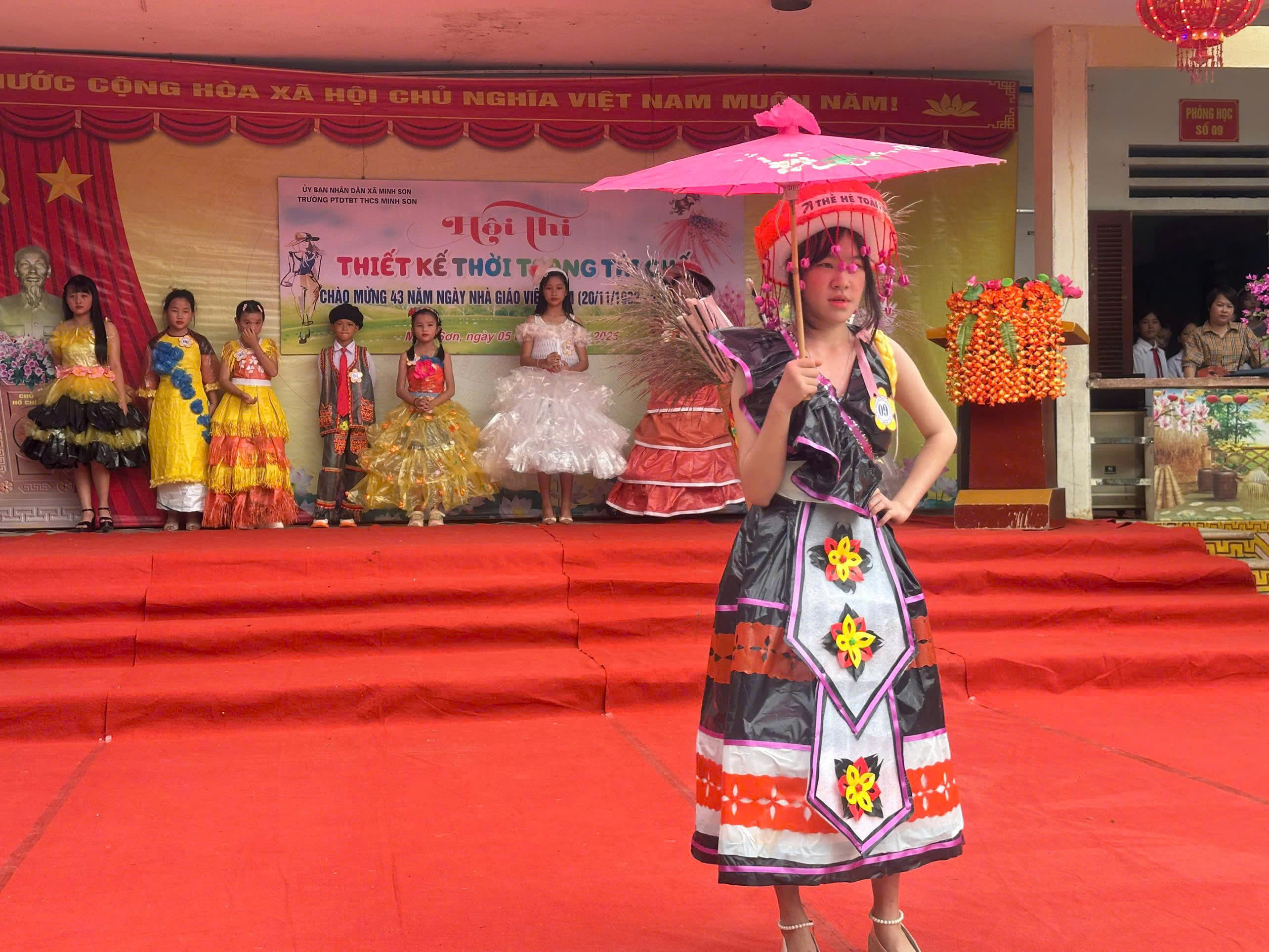TRƯỜNG PTDTBT THCS MINH SƠN TỔ CHỨC HỘI THI TRANG PHỤC TÁI CHẾ Trong không khí thi đua sôi nổi chào mừng kỷ niệm 43 năm ngày Nhà giáo Việt Nam (20/11/1982 - 20/11/2025), ngày 05/11/2025 trường PTDTBT THCS Minh Sơn long trọng tổ chức Hội thi “Trang phục tái chế” - một sân chơi bổ ích, sáng tạo và đầy ý nghĩa dành cho các em học sinh.