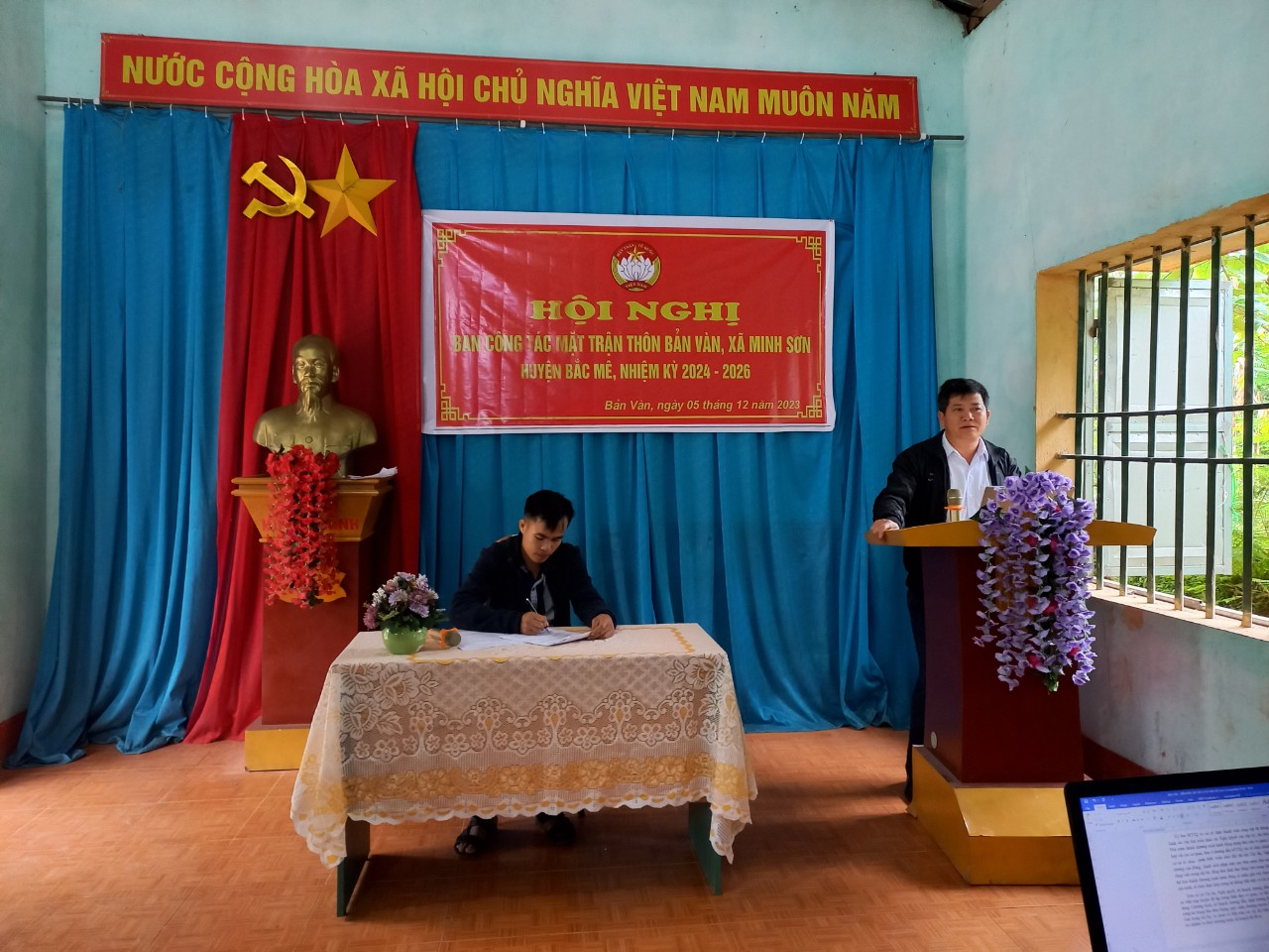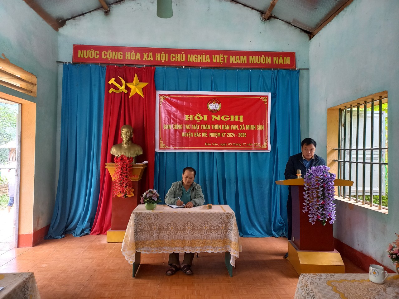Đến dự và chỉ đạo Hội nghị có đồng chí Triệu Văn Minh - huyện ủy viên, Bí thư Đảng ủy, Chủ tịch HĐND xã, Ông Lý Văn Tôn - Phó Chủ tịch Ủy ban MTTQ Việt Nam huyện Bắc Mê và các lãnh đạo Thường trực Đảng ủy, HĐND, UBND, UBMTTQ xã, các tổ chức chính trị xã hội xã và các ông, bà trong Ban công tác Mặt trận thôn và các Trưởng Ban công tác Mặt trận các thôn .