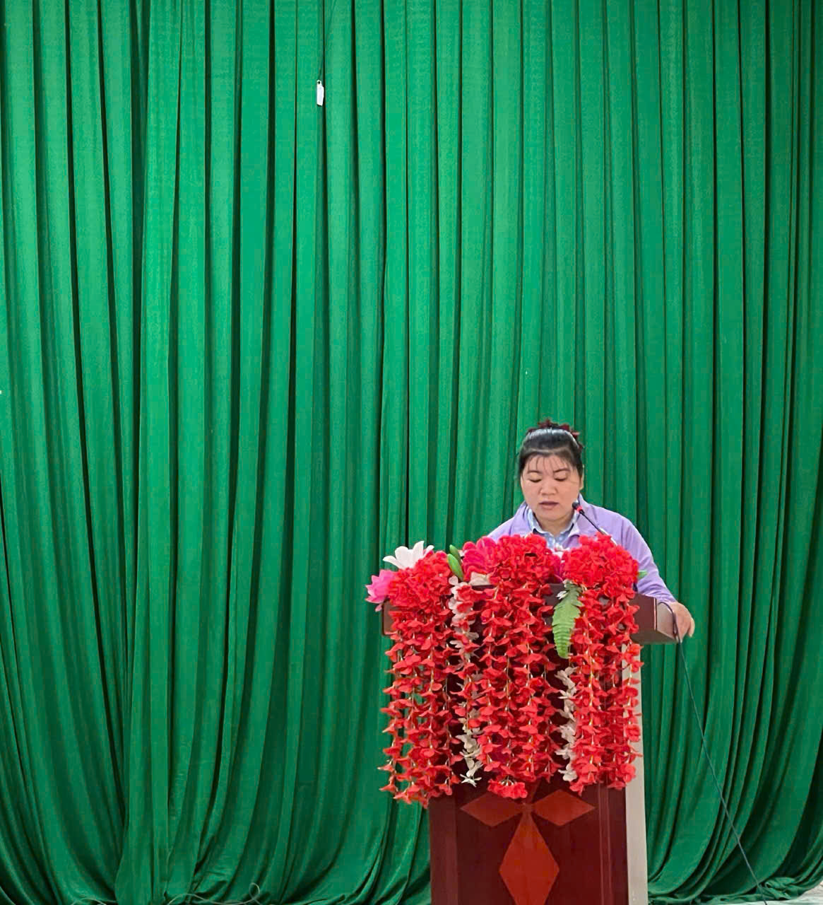 Đồng chí Lục Thị Lan – pct UBND xã Triển khai các văn bản: