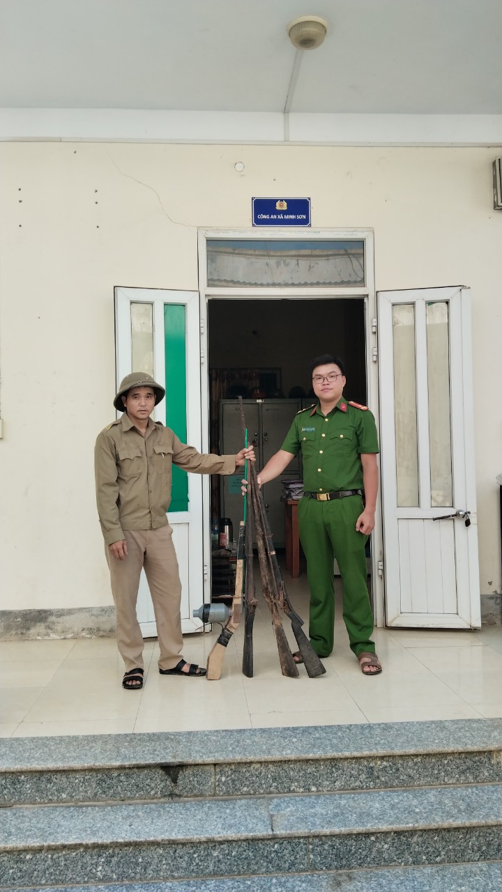 Ngày 13.9.2024 tổ ANTT thôn Nà Sáng đã tích cực vận động thu hồi đc 04 khẩu súng kíp tự chế .